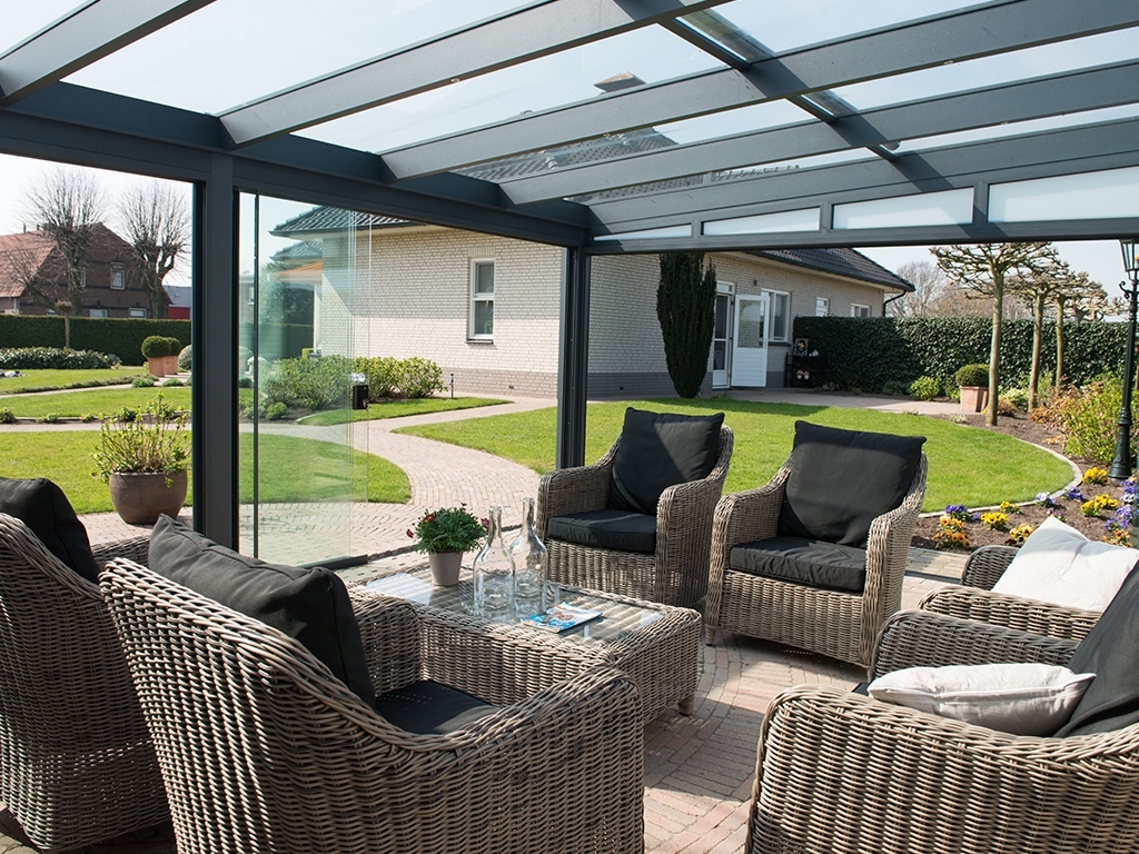 Een tuinkamer – oftewel een terrasoverkapping met glazen schuifwanden – geeft u extra ruimte en volop transparantie. De tuinkamer is dan ook de perfecte oplossing als u graag langer van uw tuin wilt genieten zonder uit te bouwen. Overigens is een tuinkamer ook een slimme aanpassing als u al een veranda of tuinoverkapping heeft en graag uit de wind wilt zitten.